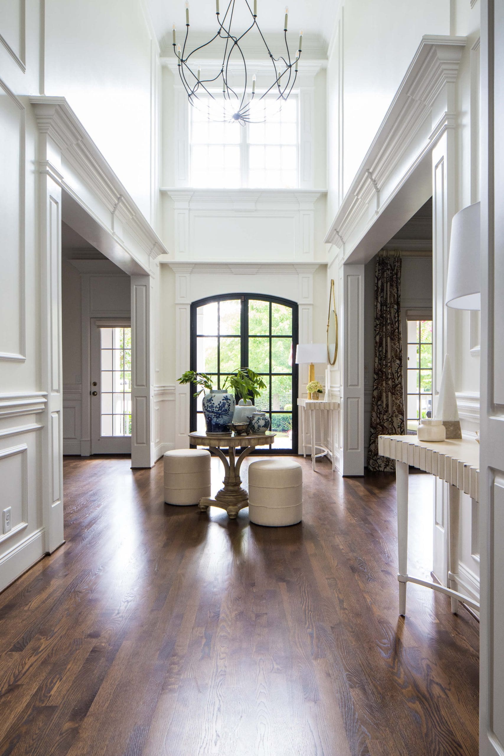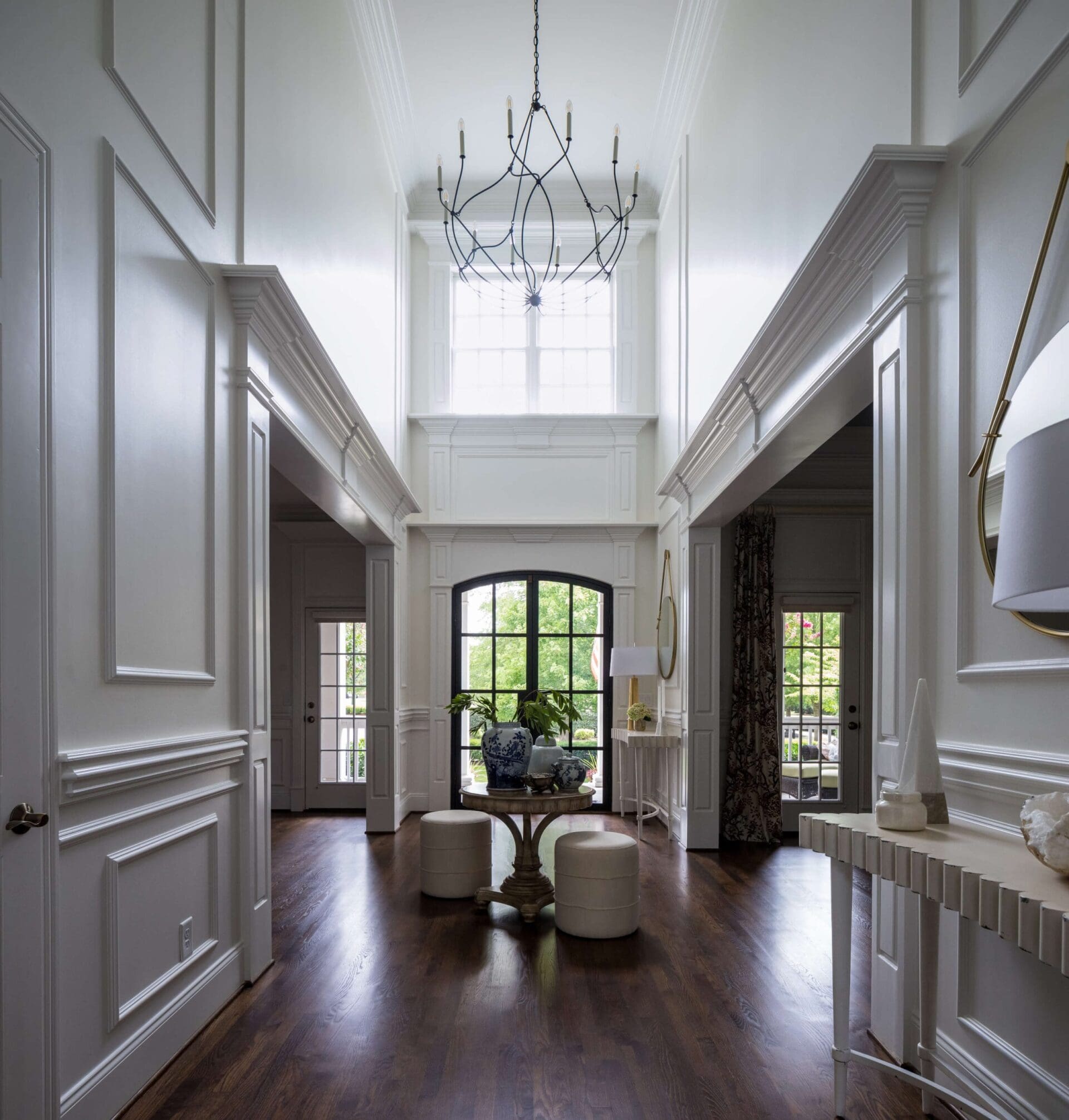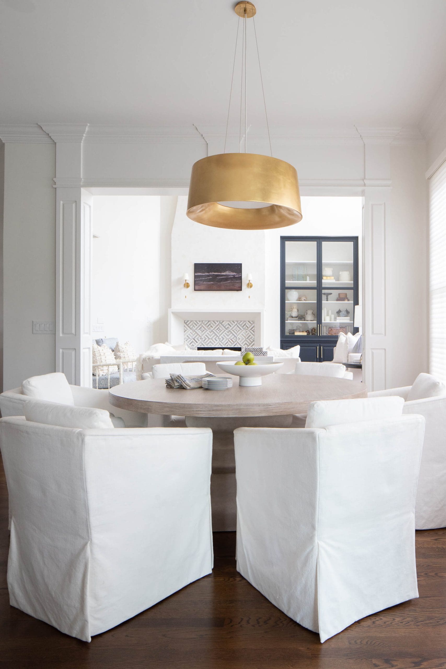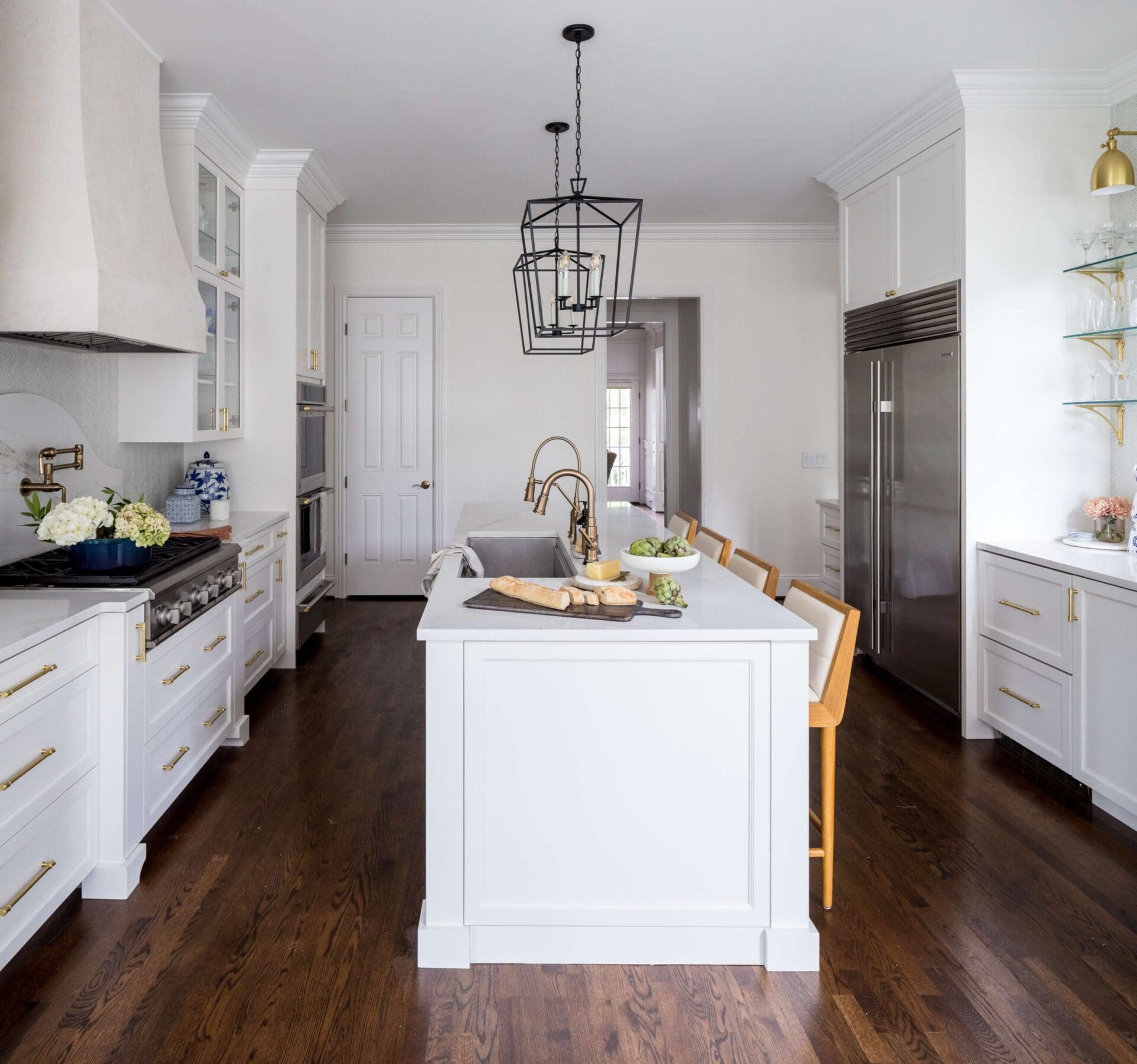 The renovation of the Annondale home showcases a remarkable dedication to revitalizing its core areas. The kitchen boasts custom cabinets, sleek countertops, and premium appliances, marrying functionality with elegance seamlessly. Within the expansive great room, a bespoke built-in cabinet featuring large glass doors serves as a striking centerpiece, harmonizing with the modern fireplaces comprehensive facelift. The fireplace's new modern surround and elegant curved flu exude refined charm, accentuated by the addition of iron front doors. Additionally, the luxurious porch addition extends the living space outdoors, providing an inviting retreat for relaxation and social gatherings.