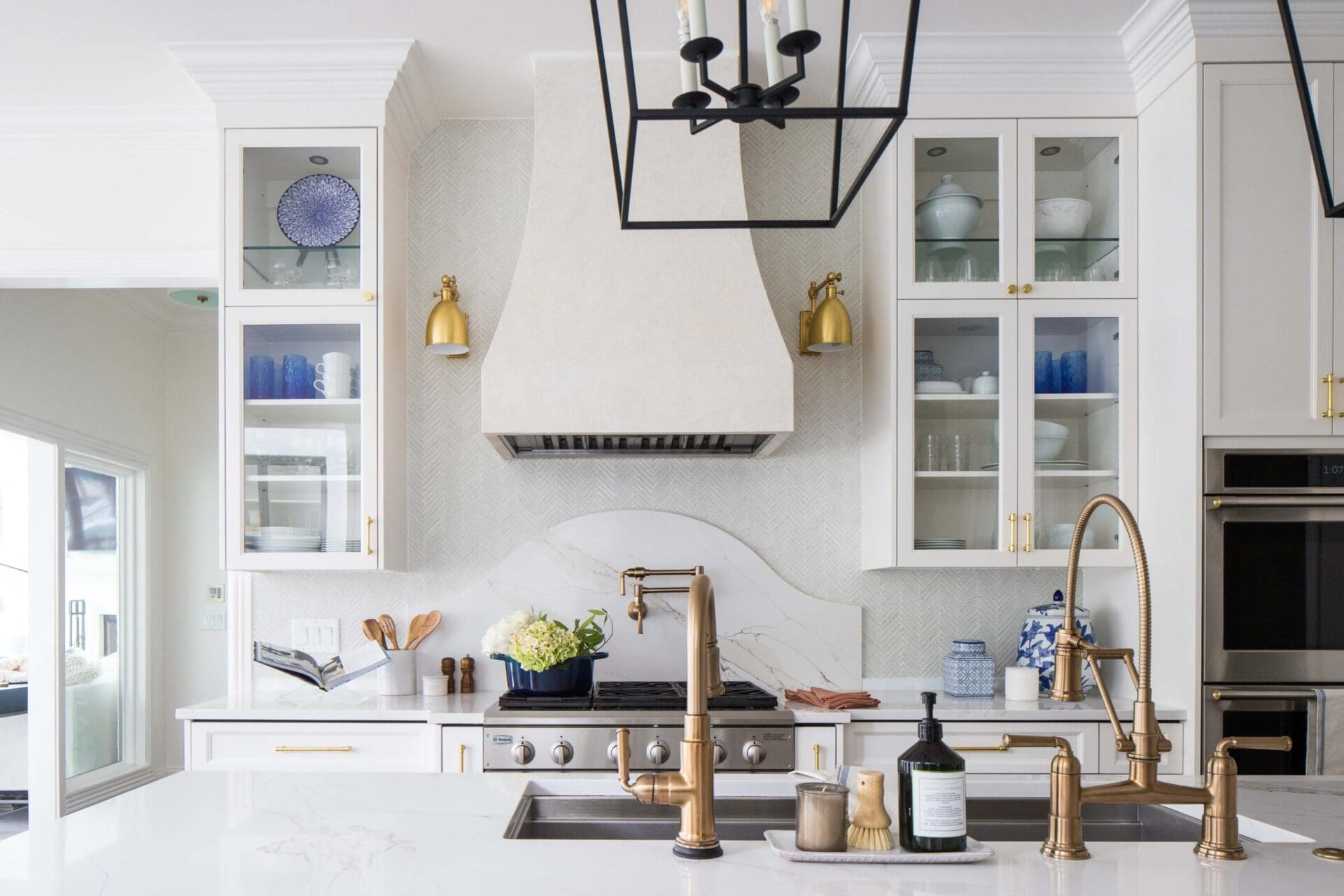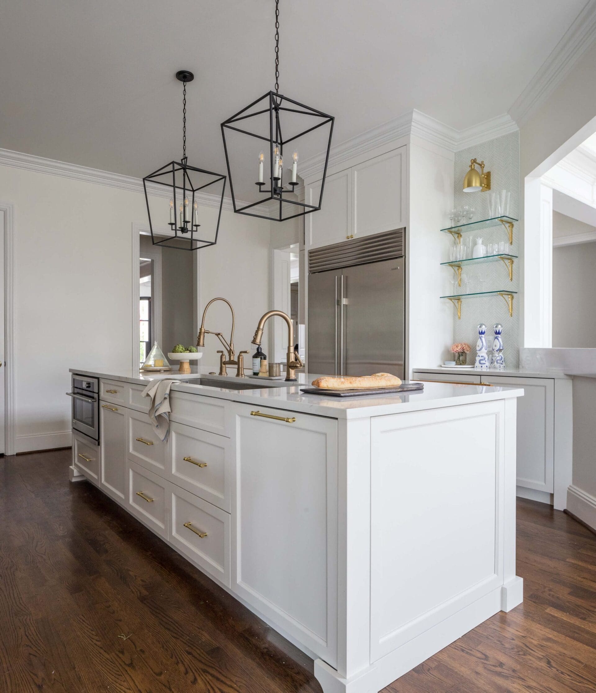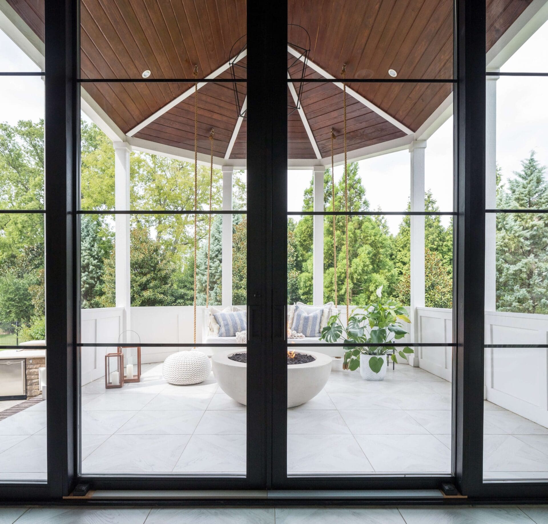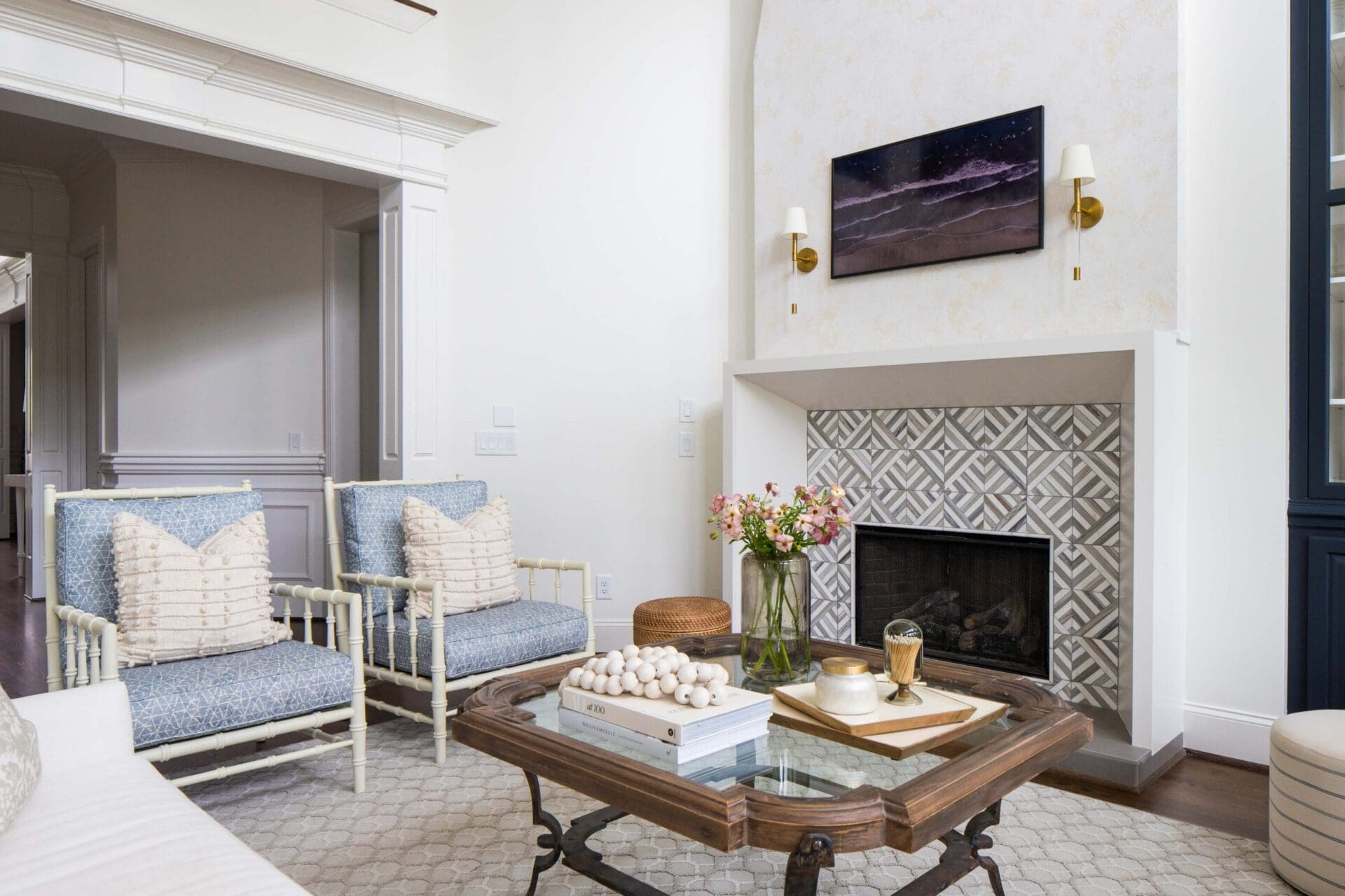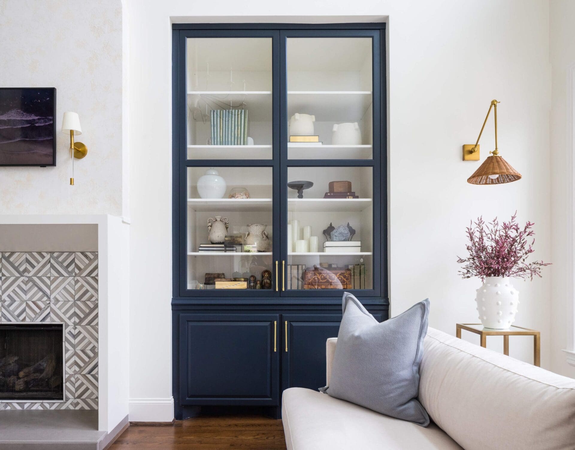 The renovation of the Annondale home showcases a remarkable dedication to revitalizing its core areas. The kitchen boasts custom cabinets, sleek countertops, and premium appliances, marrying functionality with elegance seamlessly. Within the expansive great room, a bespoke built-in cabinet featuring large glass doors serves as a striking centerpiece, harmonizing with the modern fireplaces comprehensive facelift. The fireplace's new modern surround and elegant curved flu exude refined charm, accentuated by the addition of iron front doors. Additionally, the luxurious porch addition extends the living space outdoors, providing an inviting retreat for relaxation and social gatherings.