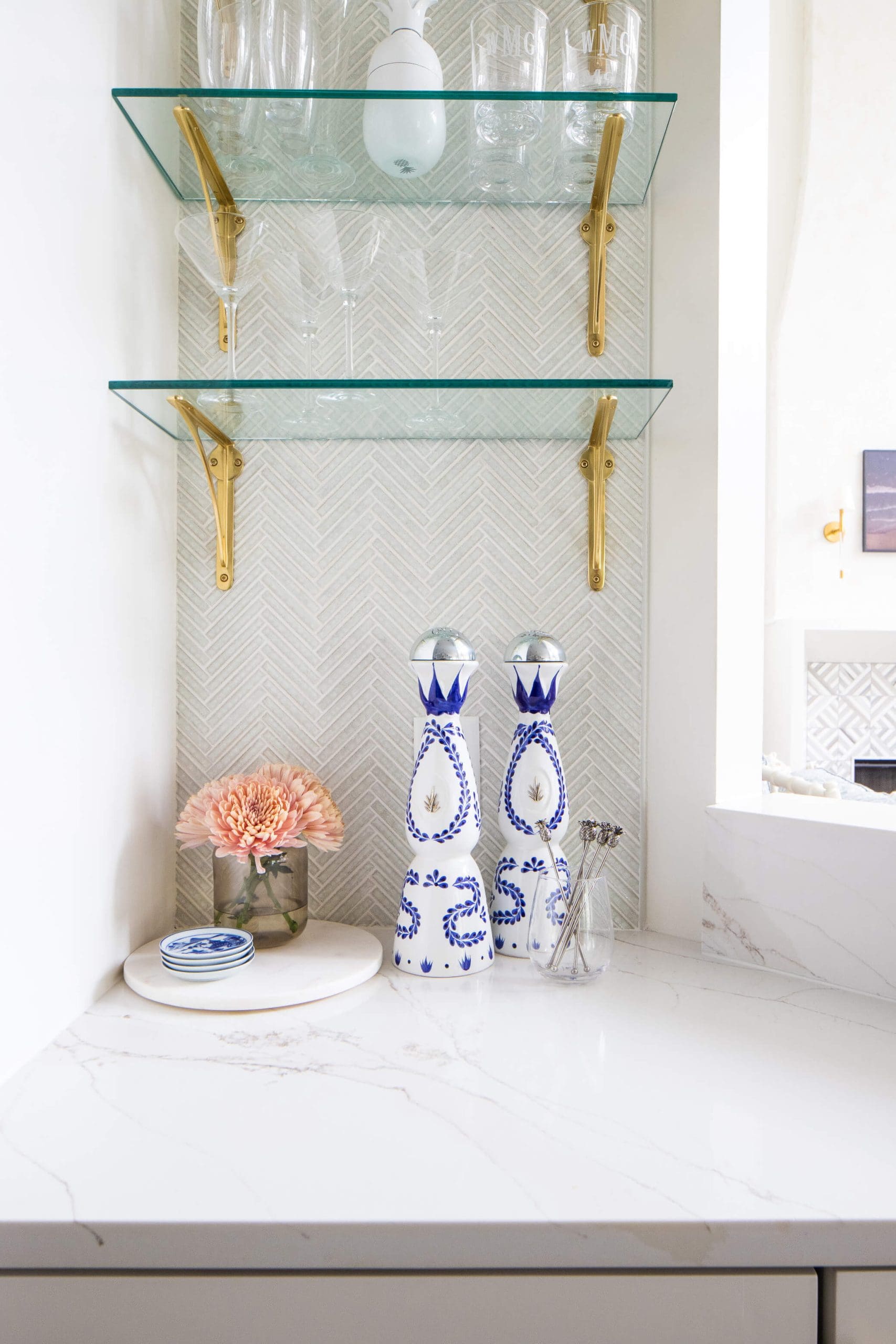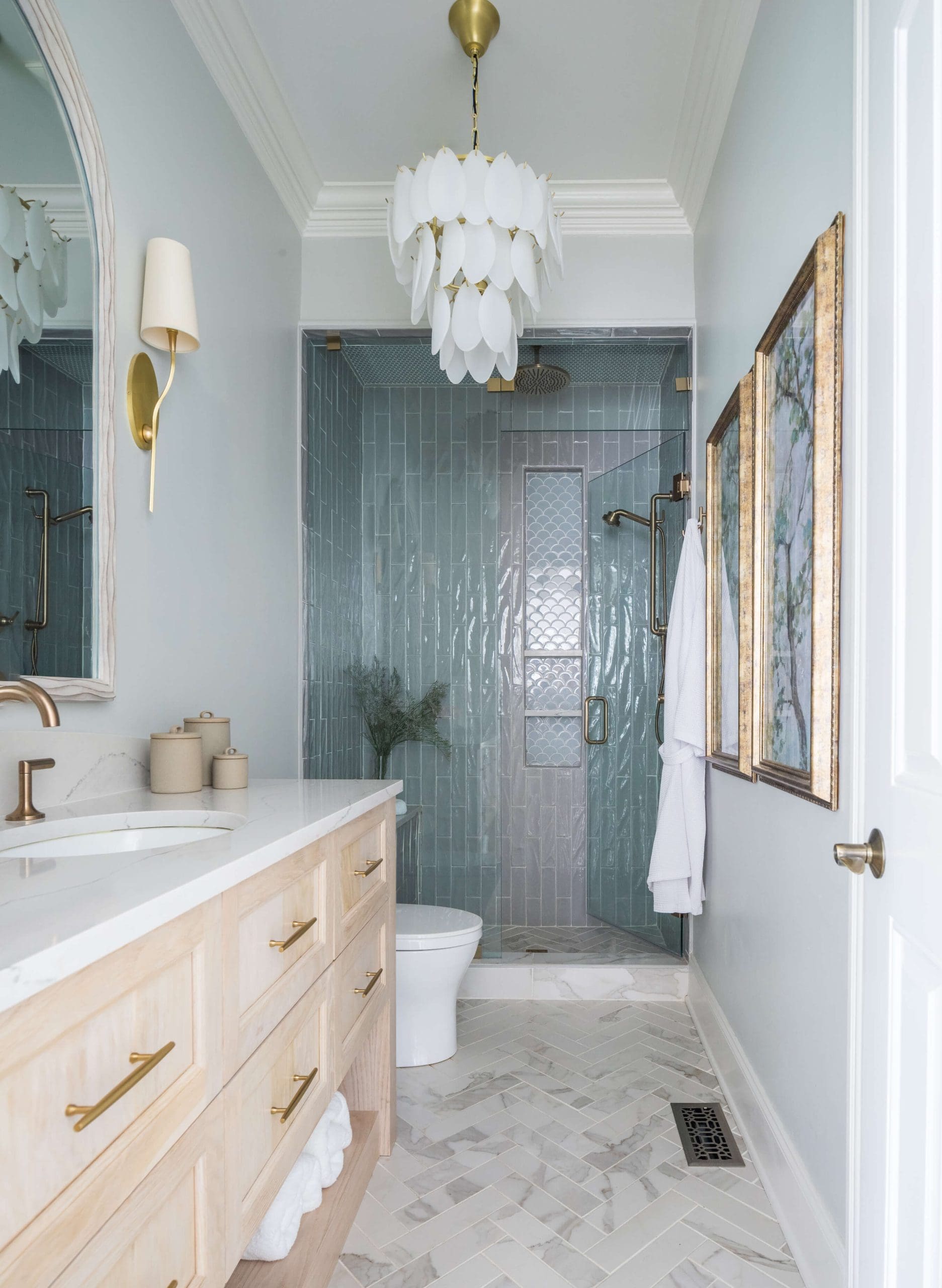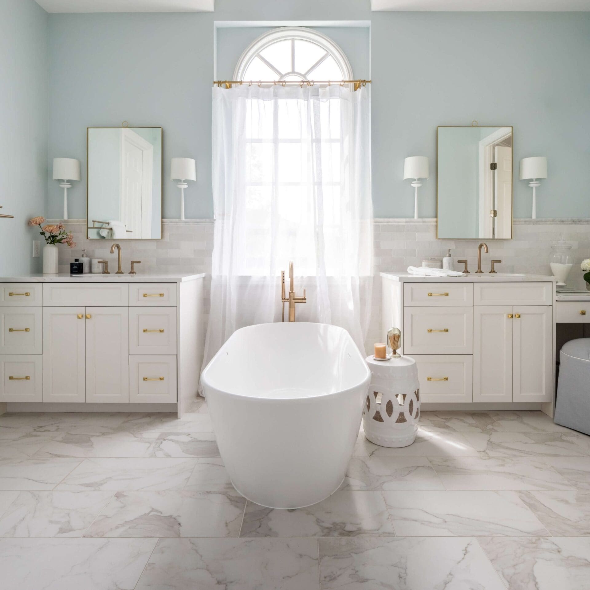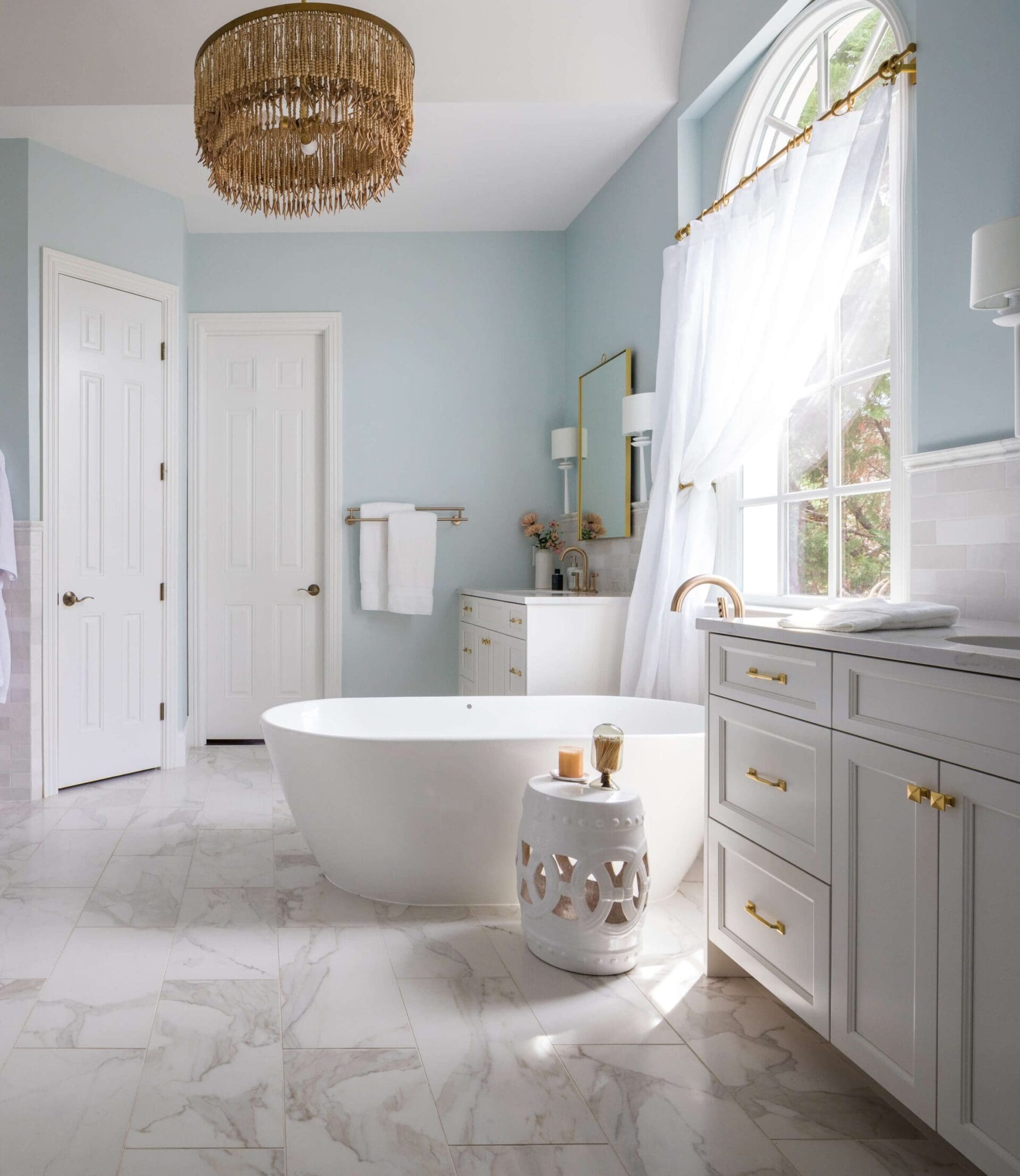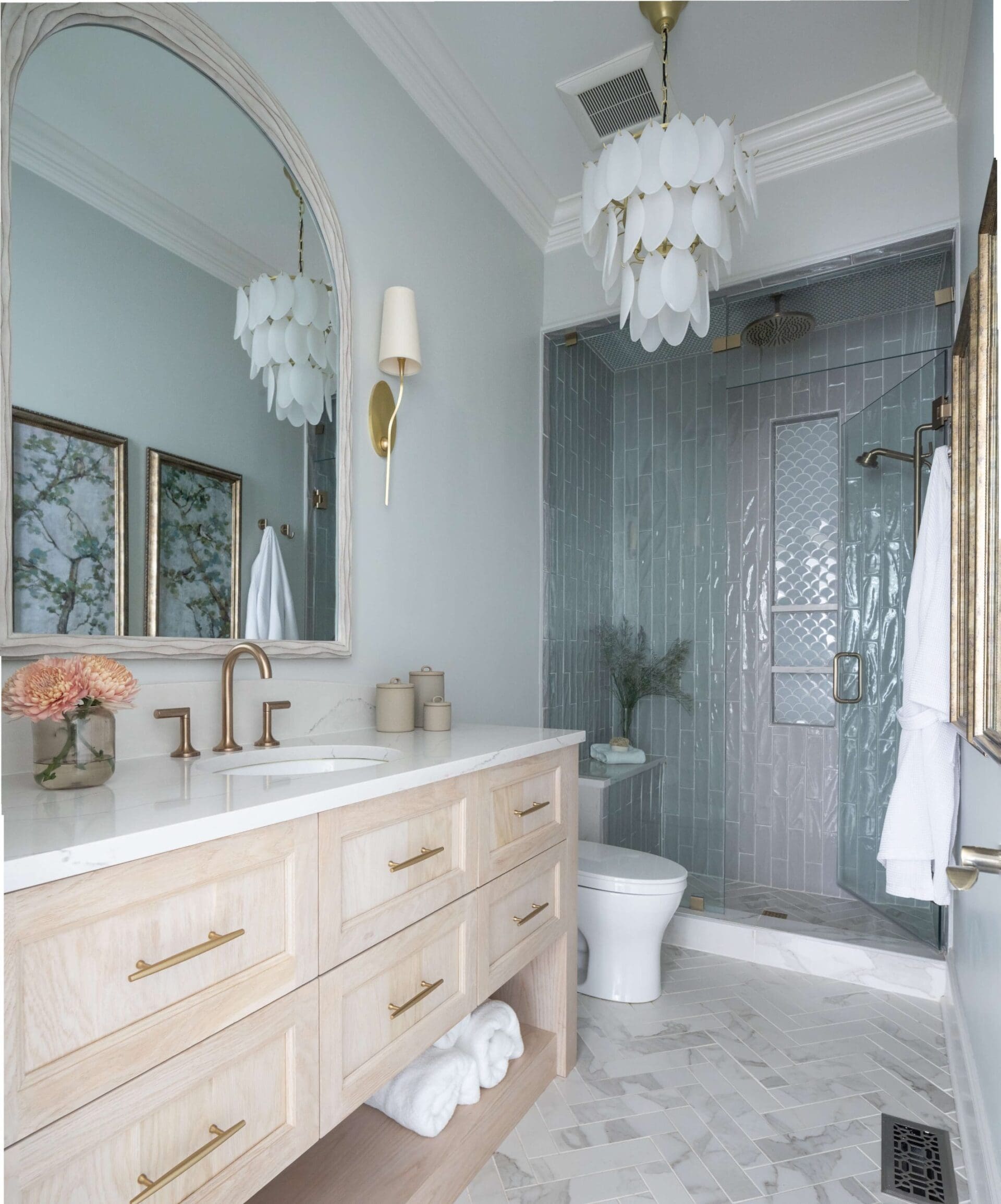 The renovation of the Annondale home showcases a remarkable dedication to revitalizing its core areas. The kitchen boasts custom cabinets, sleek countertops, and premium appliances, marrying functionality with elegance seamlessly. Within the expansive great room, a bespoke built-in cabinet featuring large glass doors serves as a striking centerpiece, harmonizing with the modern fireplaces comprehensive facelift. The fireplace's new modern surround and elegant curved flu exude refined charm, accentuated by the addition of iron front doors. Additionally, the luxurious porch addition extends the living space outdoors, providing an inviting retreat for relaxation and social gatherings.