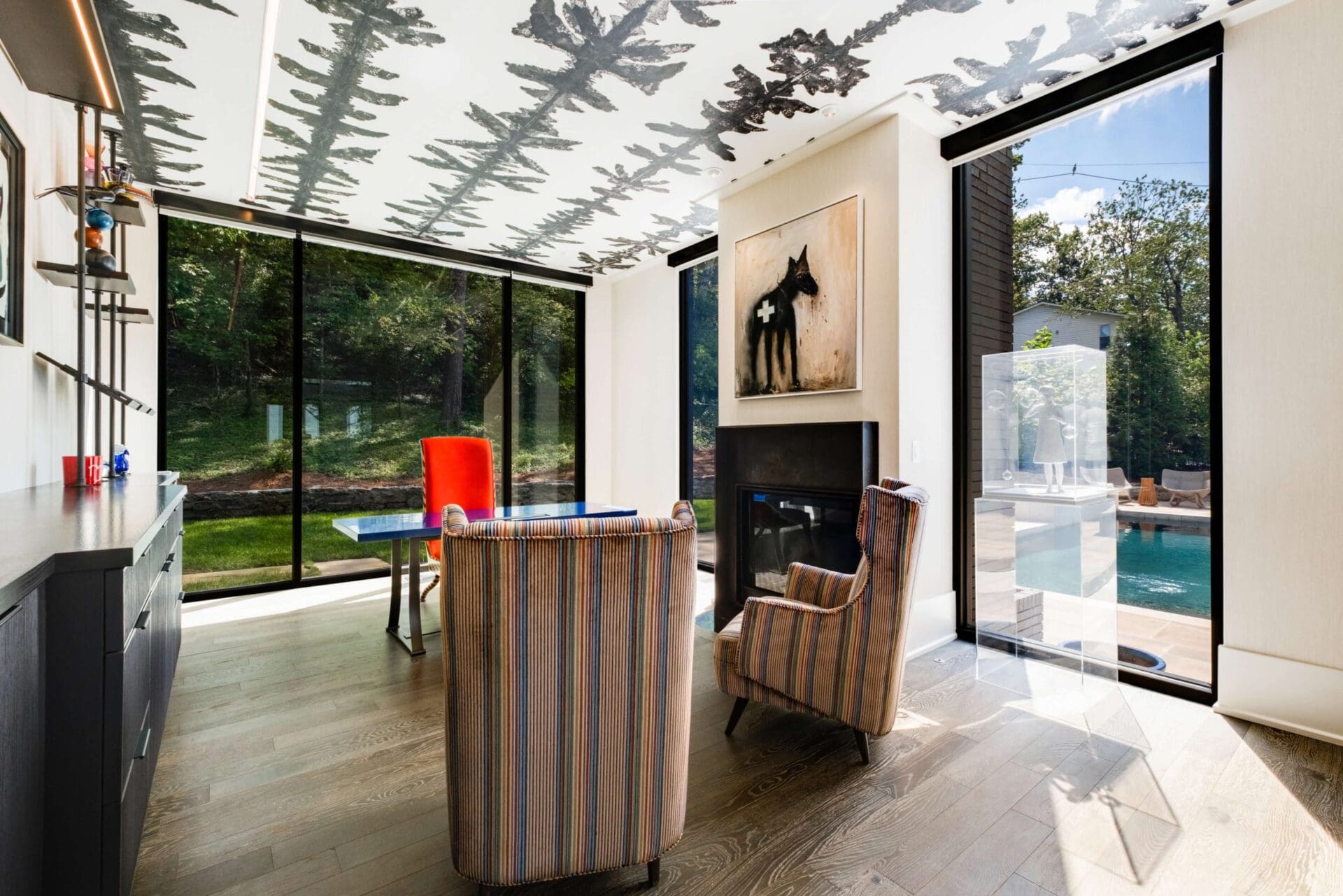 Transforming from a modest dwelling to a breathtaking modern oasis, this home remodel spared no luxury. The once standard pool underwent a stunning renovation, flanked by an outdoor kitchen and seating area perfect for entertaining under the stars. Inside, the kitchen became a culinary haven, while a sophisticated wine room offered the perfect setting for connoisseurs. Lavish primary closets and the convenience of an elevator added practical opulence, while the driveway and landscaping exuded curb appeal. Topping it off, a captivating voodoo lounge emerged as a playful and intriguing retreat within the home's design.