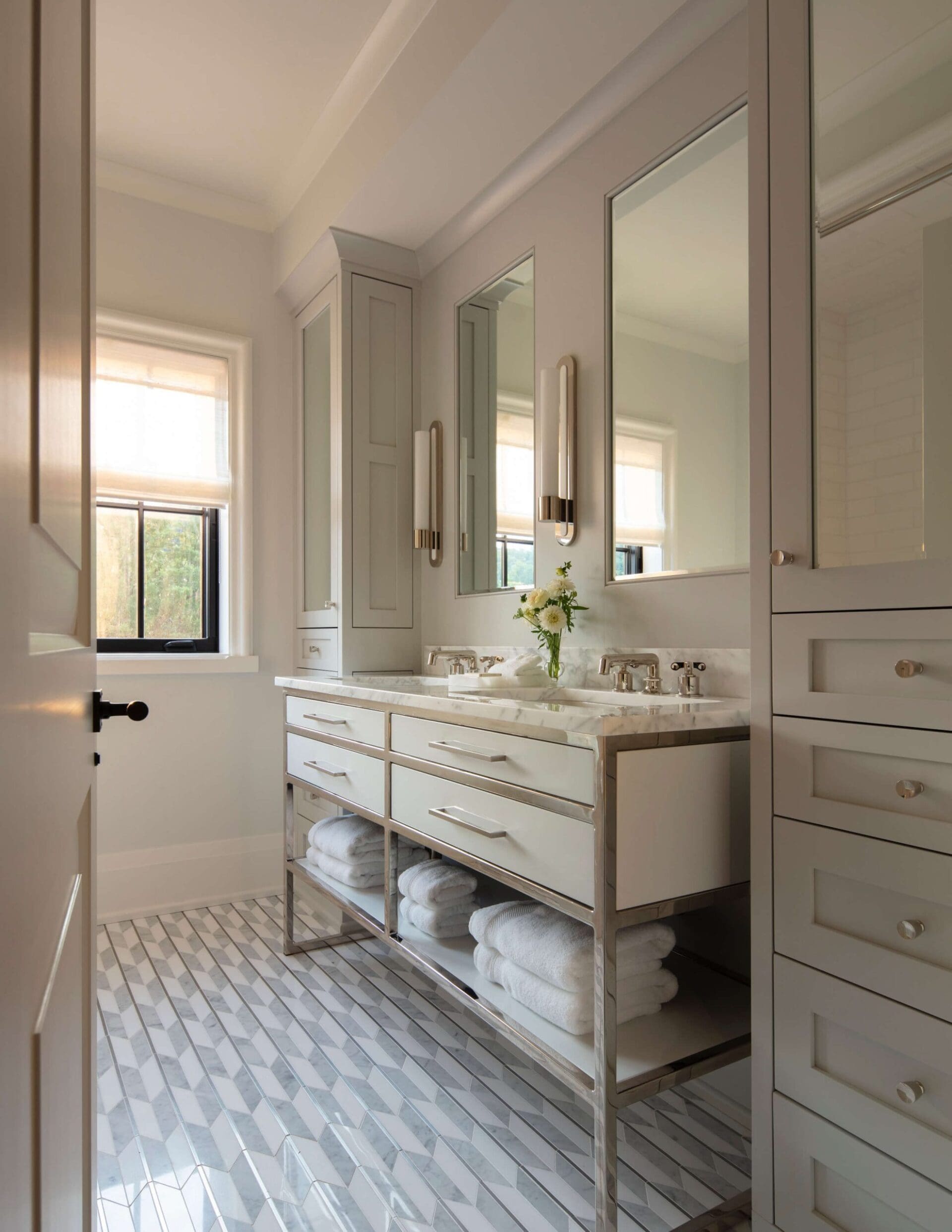 We traveled to Baltimore, Maryland to spearhead a prestigious project that first required crafting exquisite cabinetry and millwork in our workshop in Nashville. Our team then traveled to Baltimore for the final installation. With meticulous attention to detail, we seamlessly integrated matching grained white oak throughout the home, bringing harmony to both wood paint and metal accents. The result was a cohesive aesthetic --and gorgeous results. This project stands as a testament to our dedication to excellence and our ability to bring visions to life across geographic boundaries.