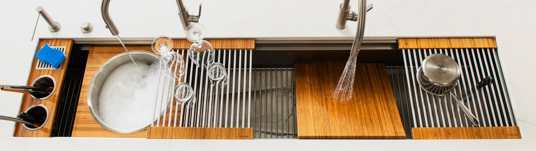 The Galley eliminates kitchen inefficiencies while maximizing space and organization. Watch the stress around mealtime disappear as The Galley Workstation changes how you work in your kitchen.